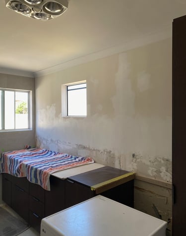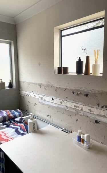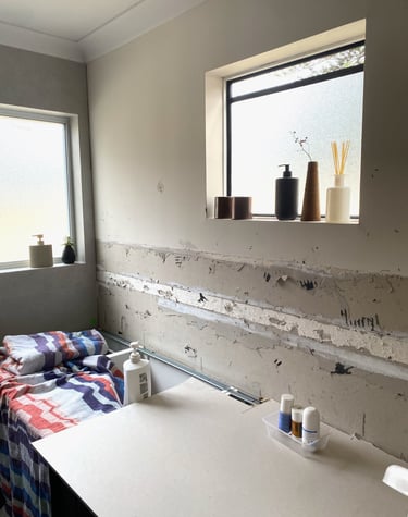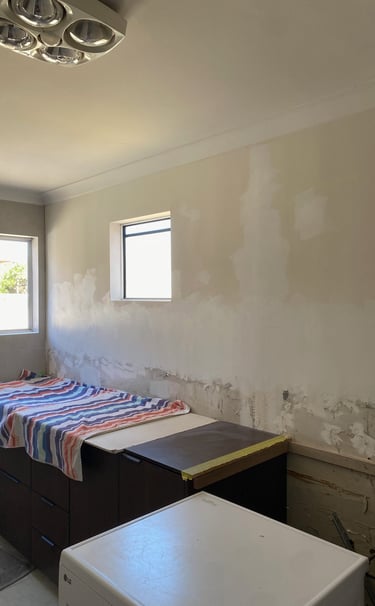 Customer was upgrading their bathroom/ laundry and required the wall to be made good above a new (to be installed) splashback.